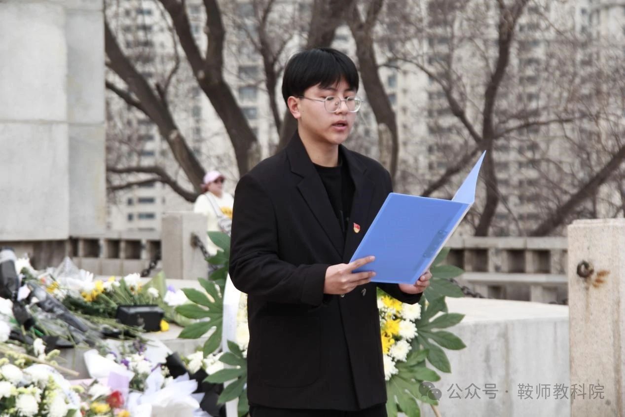 祭扫活动伊始,全体党员师生在烈士碑前对逝去的英烈进行了庄严肃穆的默哀。随后,学生党员代表徐志超进行发言,深刻缅怀了革命先烈们的丰功伟绩,号召同学们继承先烈遗志,努力为家乡建设、祖国繁荣富强贡献力量。