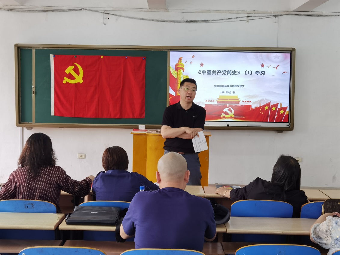 党史学习活动由教科院党总支书记李刚主持,由科研院长范士红老师领学,学习《中国共产党简史》第一章中国共产党的创建和投身大革命的洪流