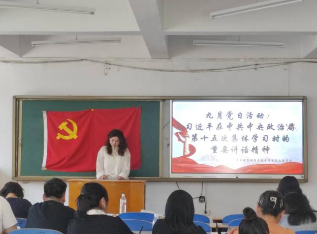 2024年9月2日,在教科院406教室,召开“习近平在中共中央政治局第十五次集体学习时的重要讲话精神”主题党日活动,活动由翟晶领学。活动过程中教师认真学习习近平总书记在中共中央政治局第十五次集体学习时关于健全全面从严治党体系的重要讲话精神。