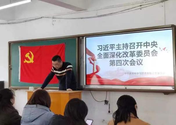 2024年2月26日,在教科院406教室,召开“习近平主持召开中央全面深化改革委员会第四次会议”主题党日活动,活动由李刚领学。活动过程中教师认真学习,注意系统集成与协同合作,继续坚持以学生为中心的思想,关注社会发展需求,积极创新并勇于实践,强化问题导向意识。