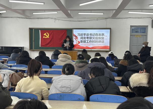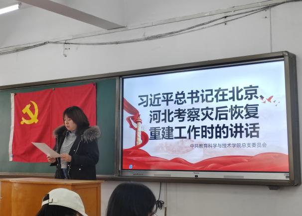 2024年1月8日,在教科院406教室,召开“习近平总书记在北京、河北考察灾后恢复重建工作时的讲话”主题党日活动,活动由陈巍领学。活动过程中,教师认真学习以人民为中心的教育理念,培养责任担当与敬业精神,提高教育与社会发展结合的意识。