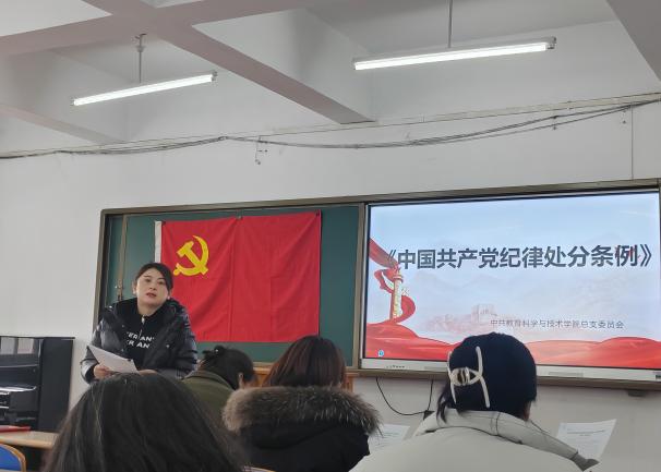 2024年1月8日,在教科院406教室,召开《中国共产党纪律处分条例2024》主题党日活动,活动由翟晶领学。活动过程中教师认真学习,使教师进一步强化了纪律意识,提升了师风师德,提高了政治素养,明确了责任与义务,增强了自我约束与监督意识。