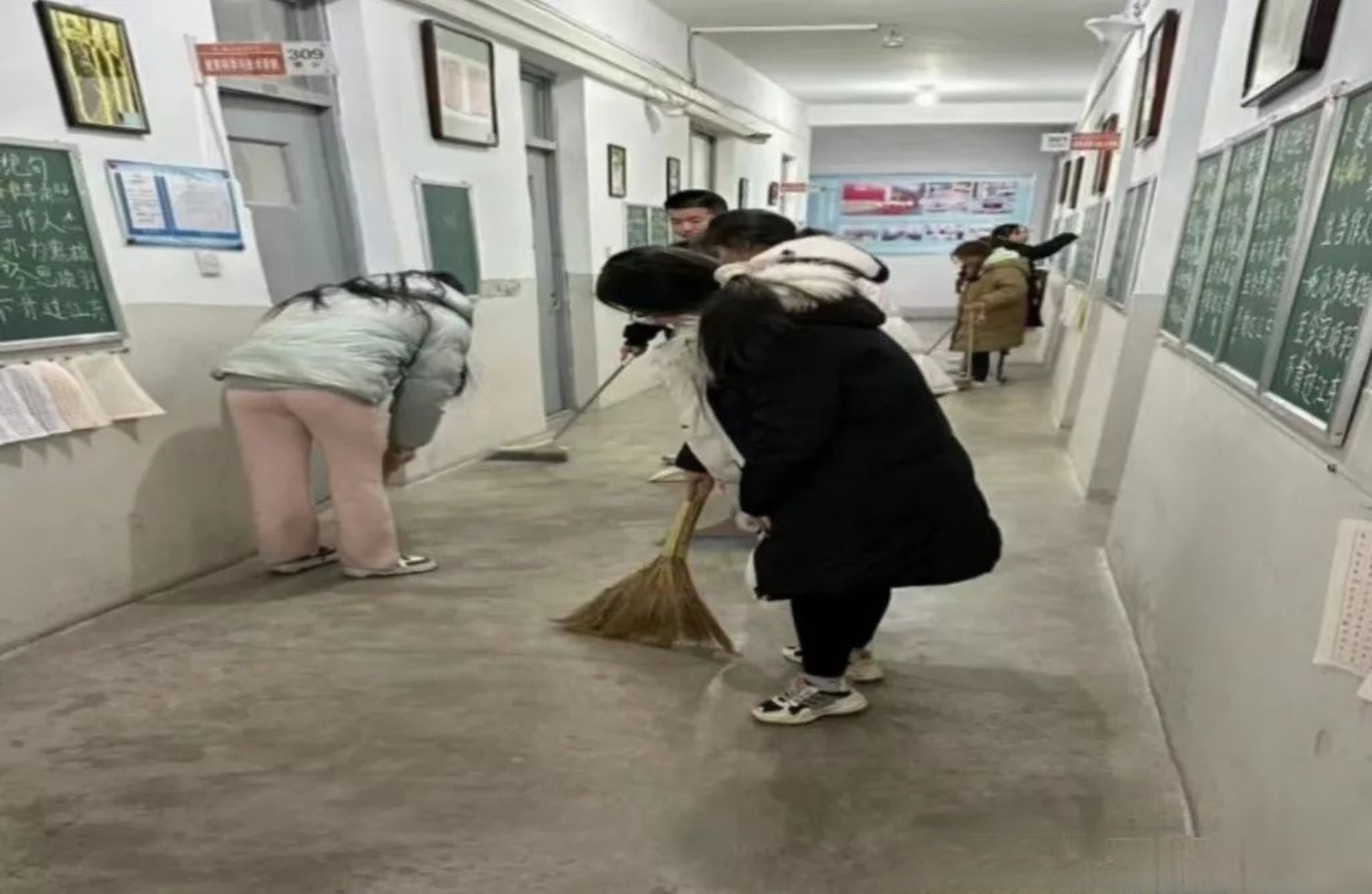 在清扫教学楼活动中,同学们分工明确,一丝不苟,整齐摆放桌椅,认真扫地拖地,仔细擦拭黑板。在高标准、高质量地完成志愿清扫的同时,宣传环保知识,积极响应习近平生态文明思想,推动学雷锋活动长效开展,鼓励学生用实际行动在以中国式现代化推进中华民族伟大复兴的使命任务中贡献青春力量,做新时代追“锋”人。