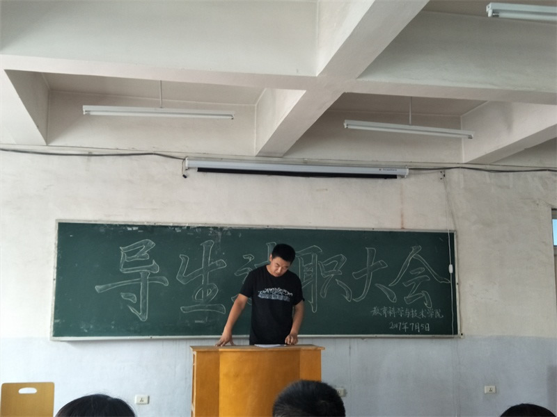2017年7月5日,k8凯发教育科学与技术学院2016——2017年度14级导生述职大会在教科院406教室圆满举办。教科院2014级共16位导生对他们一年来的导生工作做了详细而又生动的陈述。教科院学工办主任徐海鹰老师、辅导员以及学生会成员和部分16级学生代表参加了本次会议。