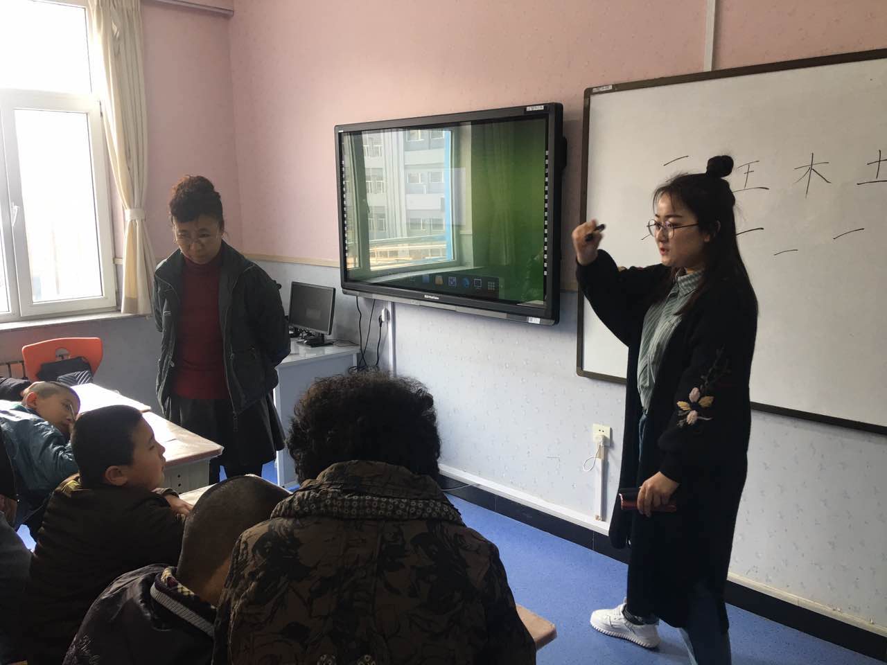 下午14点,我院学生再一次给聋哑学校的孩子们开设了一堂书法课。我院学生手把手教孩子书写自己的名字和简单的字,如“上”“下”“左”“右”等。在课程中,充分展现了我院学生的耐心细致和深厚的基础功底。在教学中的一丝不苟和对孩子们的关心关爱在课后受到了家长和聋哑学校老师的一致好评。