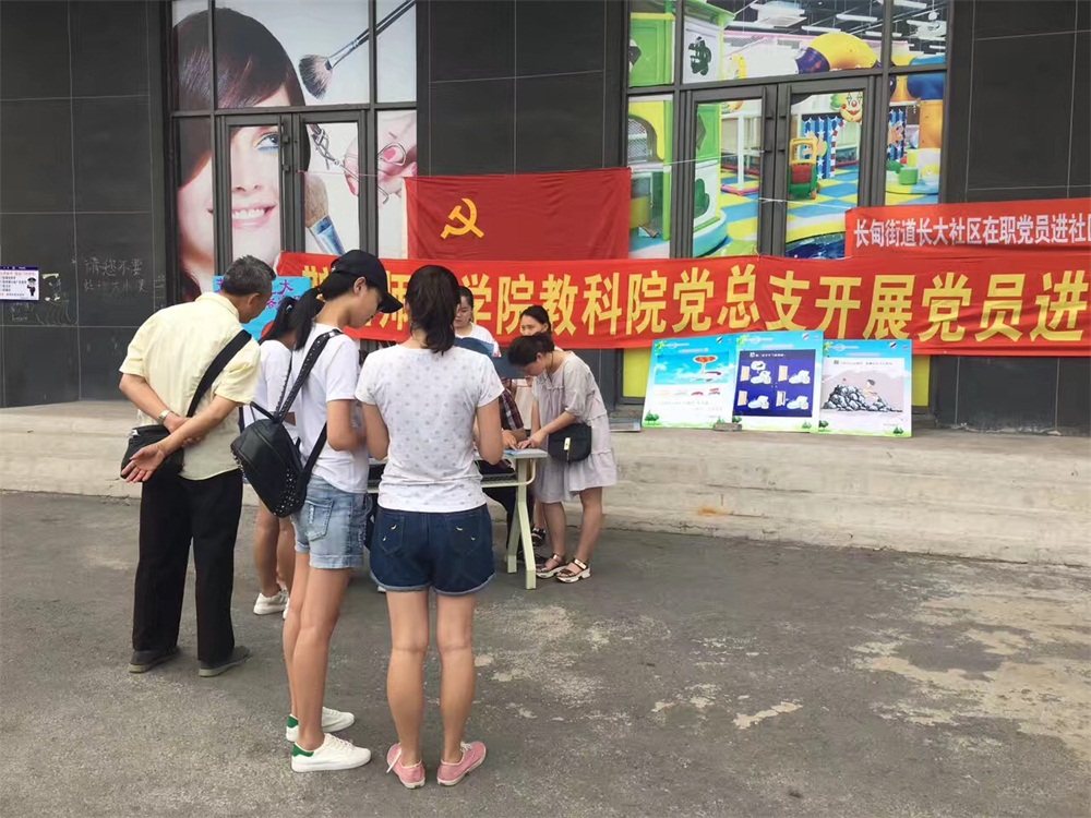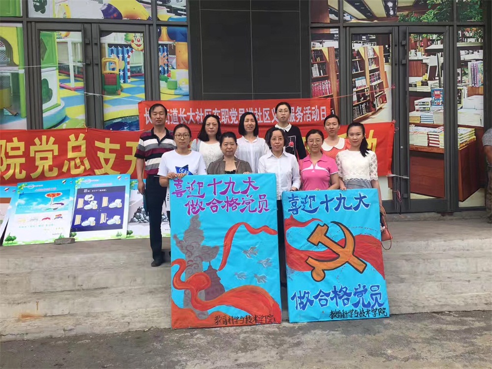 教科院教师党员队伍与教科院党员学生代表一行二十多人在长大社区开展了重温入党誓词、心理咨询服务和清理社区老旧居民楼小广告等活动。在活动的同时,教科院的党员学生代表还针对马上要填报高考志愿的学生家长做了高考咨询活动,受到了社区居民以及路人们的赞赏。