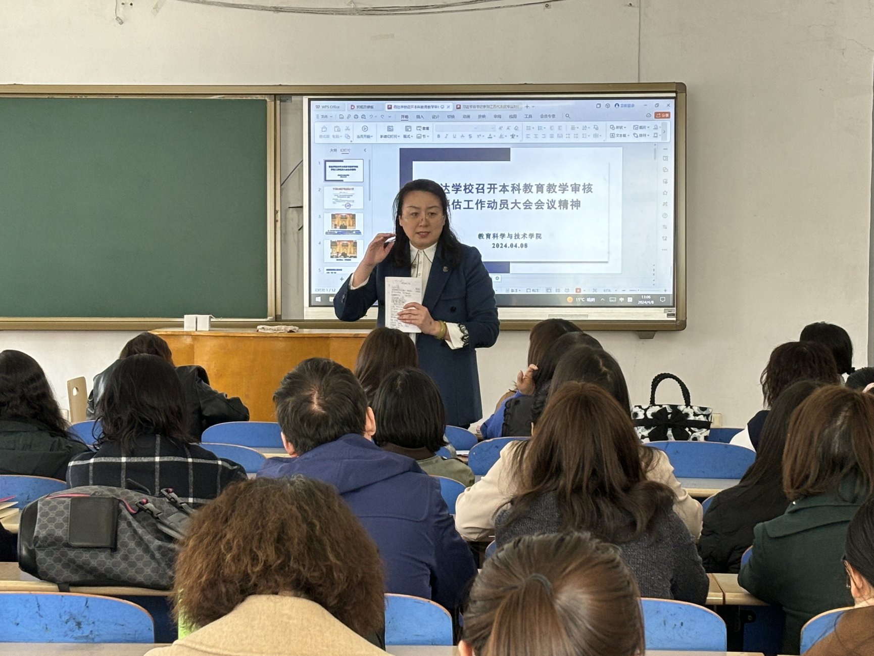 为深入贯彻落实学校关于本科教育教学审核评估工作的要求,进一步统一思想、明确任务、凝聚力量4月8日,教育科学与技术学院召开本科教育教学审核评估动员大会。